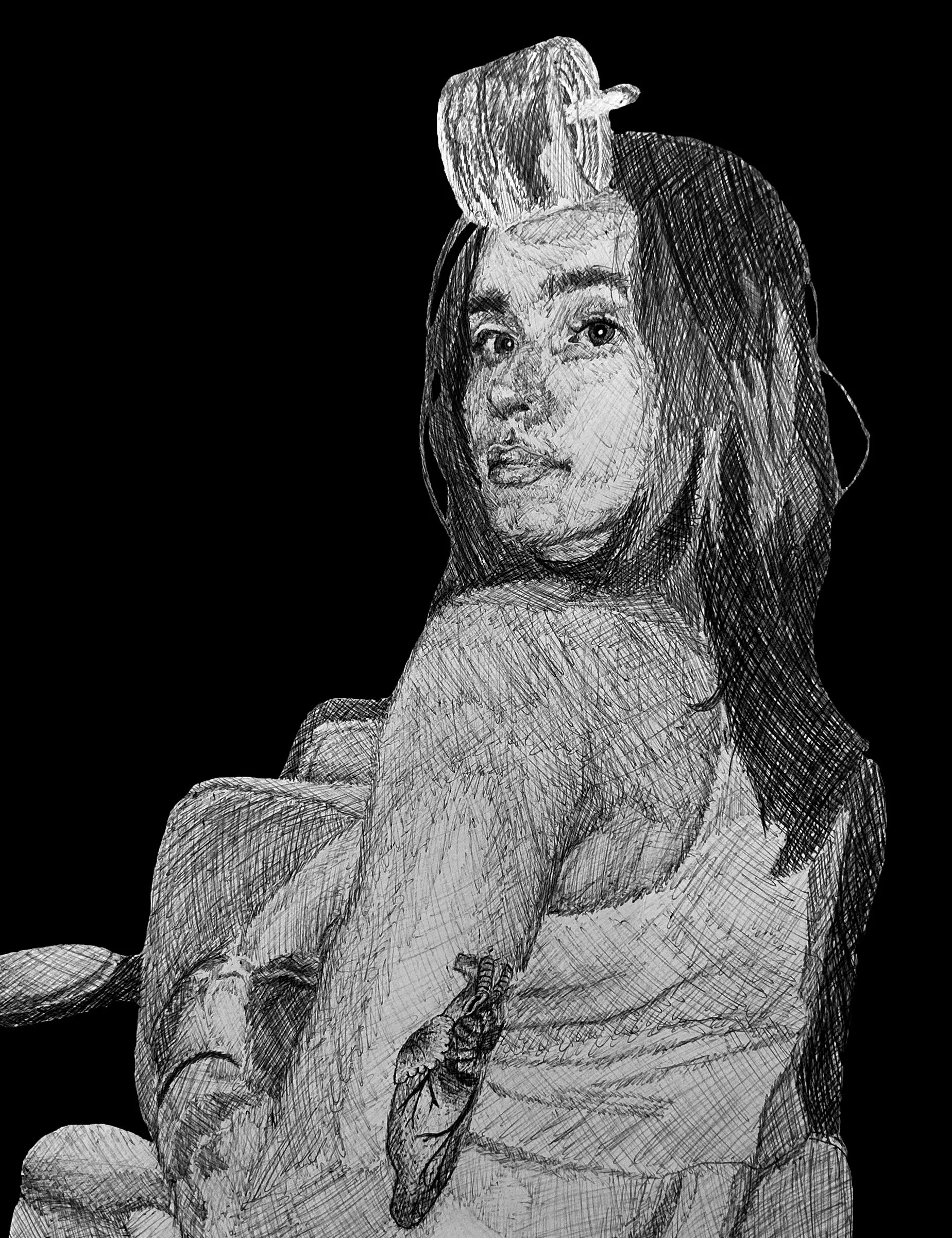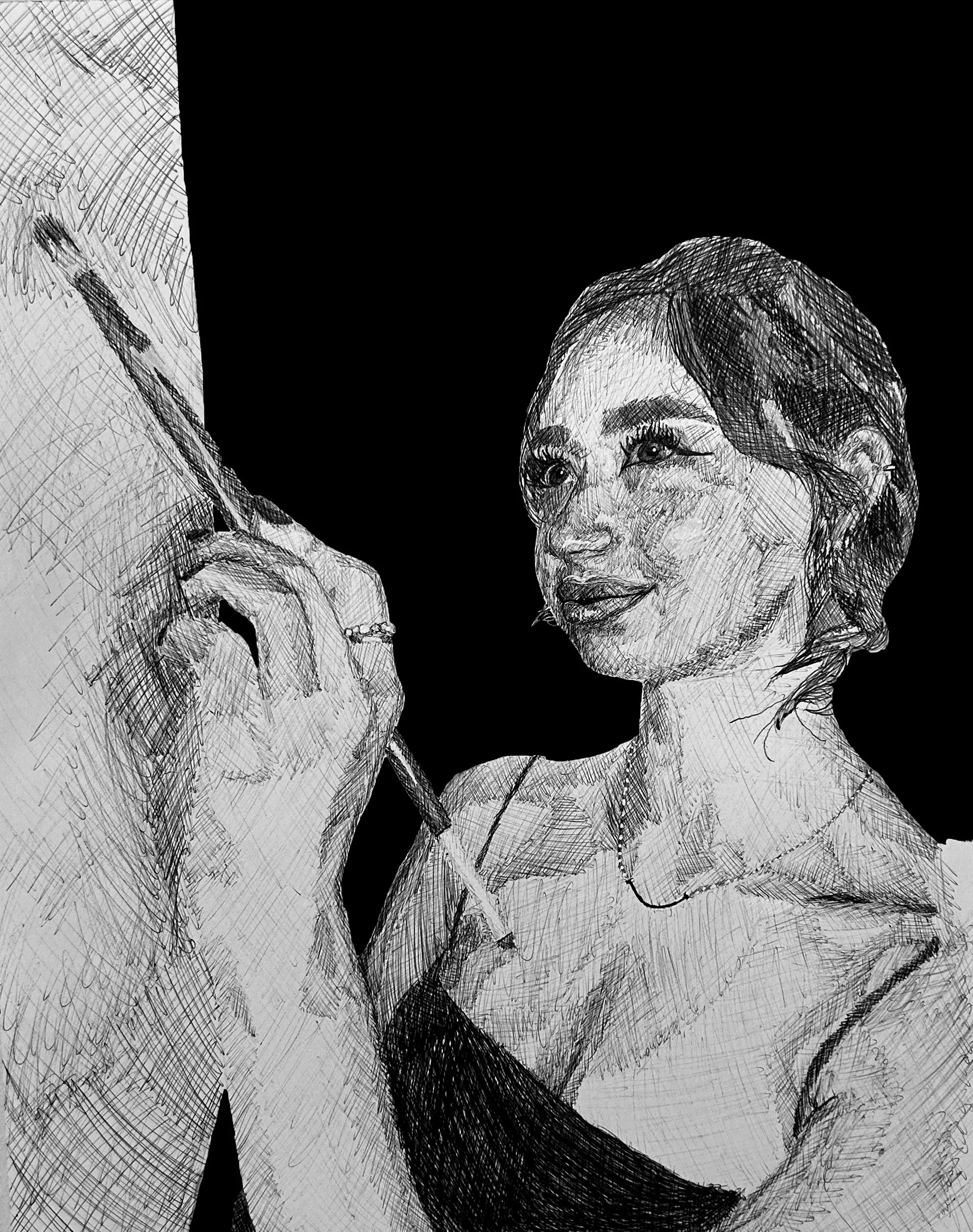 Ink PortraitsUsing a ballpoint pen and india ink, I created a series of portraits featuring people who have significantly impacted my life.Media: Mixed media paper, pen, and india ink